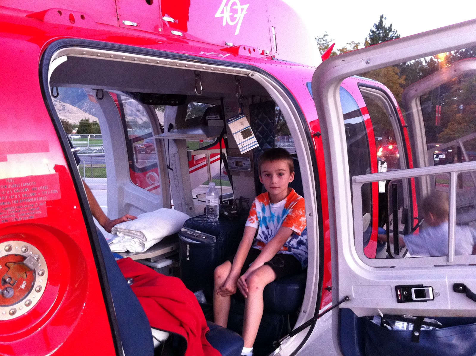 While I was watching the General Relief Society Meeting with my friends Jessica and Carlee, Bryan and the boys were hanging out with Jessica’s husband and kids. They went for a rollerblade/scooter ride on the Provo Trail, to Macey’s for ice cream, and then they watched this emergency helicopter land at the hospital. They were taking pictures and watching from behind the fence and the pilot let them come check it out and sit in it!